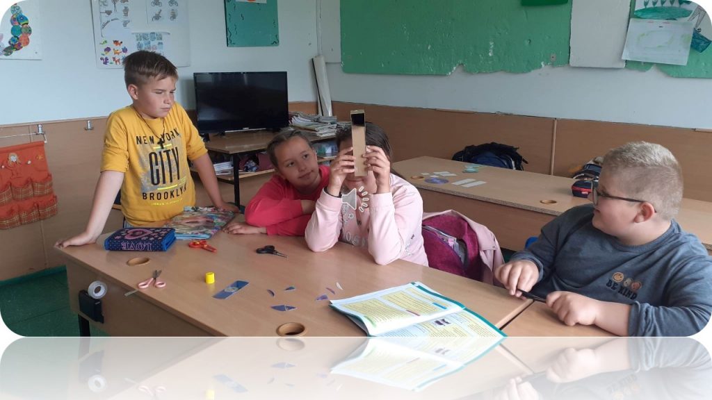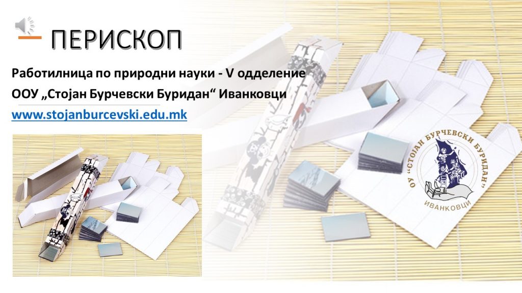 Учениците од 5 одделение по предметот Природни науки реализираа работилница изработувајќи перископ со својата наставничка Селма Амедоска. Активноста беше успешна (проверивме, перископот функционира).