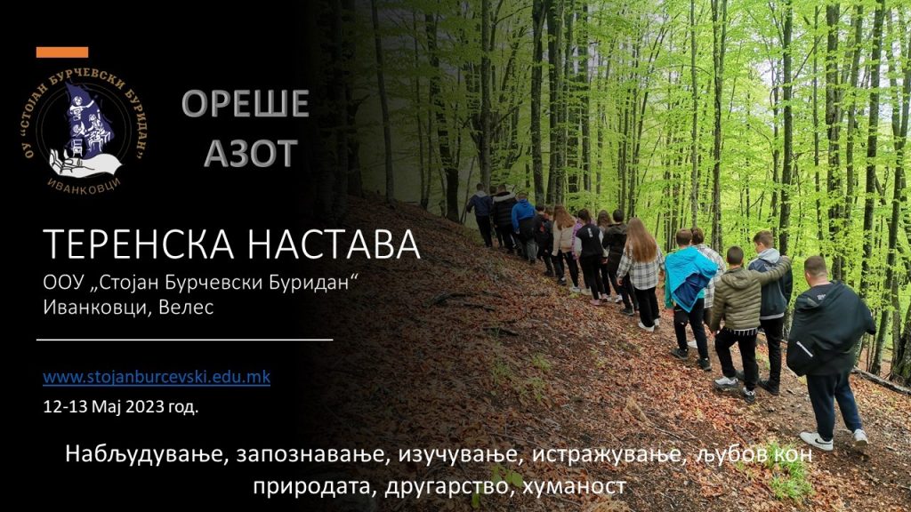 На 12 и 13 Мај учениците од 6 до 9 одделение од нашето училиште реализираа теренска настава со одговорните наставници во Ореше, село сместено на падините на Козјак. Учениците ја споија теоријата со праксата, се вклучија во акцијата GENERALKA WEEKEND (акција за расчистување и разубавување на просторот), ја продлабочија смислата за убаво, љубов кон природата, природните убавини, природните и културно – историските споменици, се негуваше другарството, хуманоста. Прекрасно искуство!