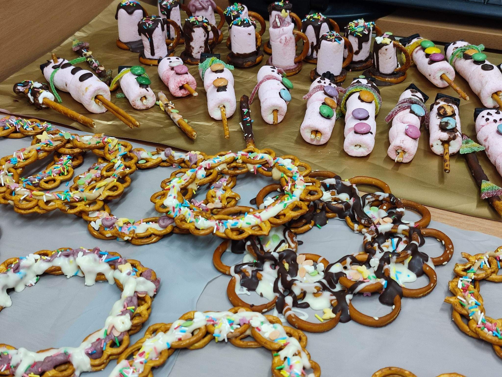По повод Велигденските празници, учениците од одделенска настава реализираа Велигденски работилници на кои се изработуваа велигденски украси и се украсуваа Велигденски јајца. Свој придонес дадоа и младите јазичари по германски јазик од 7 одд. (Сујаклари) и 9 одд. (Иванковци), изработувајќи честитки на германски јазик. Учениците ја покажаа уште еднаш својата креативност во весела и пријатна атмосфера. ЧЕСТИТИ ПРАЗНИЦИ!