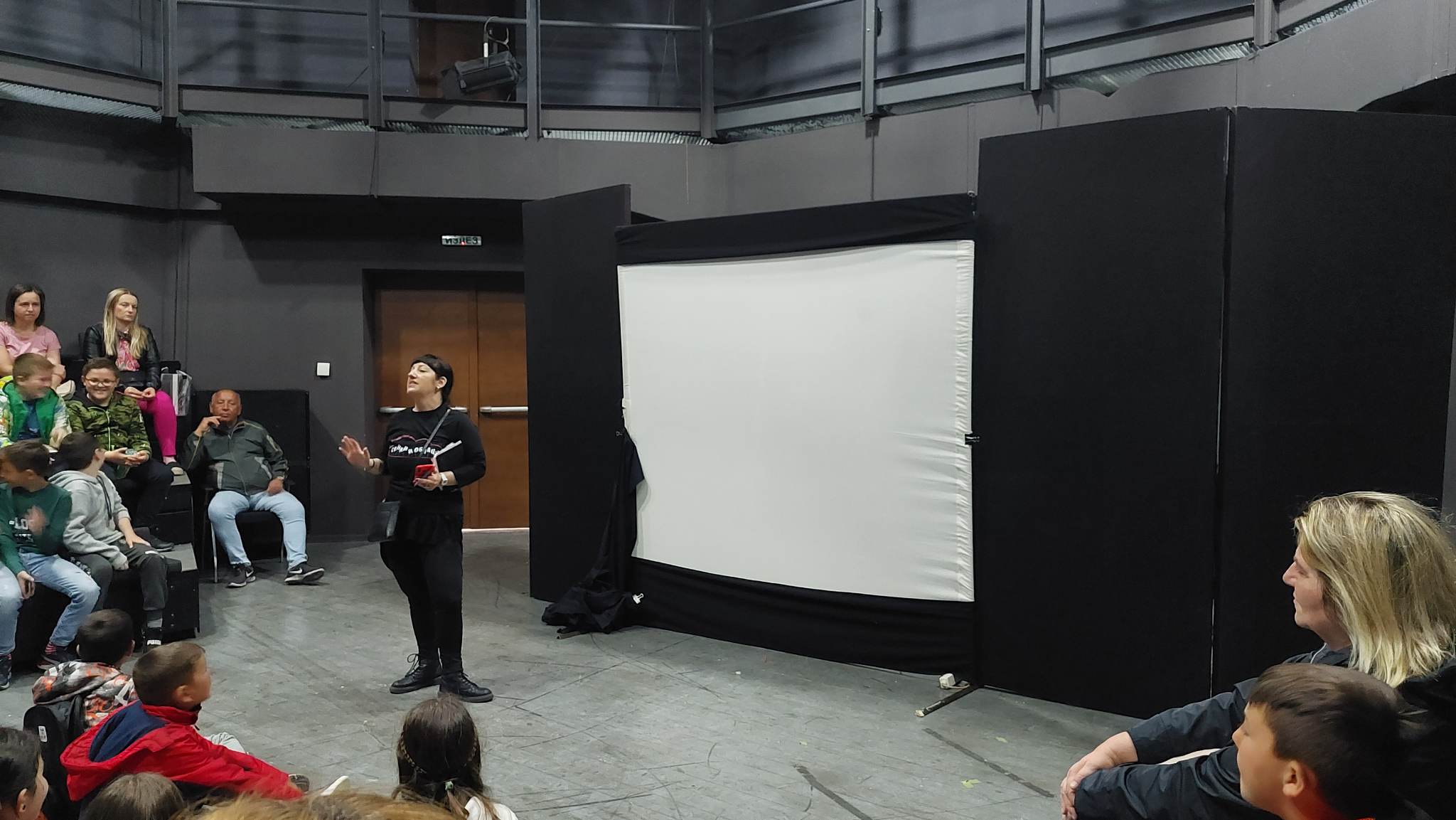 Денес, 24 Април во Театарот „Јордан Хаџи Константинов Џинот“, учениците од одделенска настава присуствуваа на театрската претстава за деца со сенки и Џин кој е избркан од нивниот свет. Претставата е работена по мотиви од книгата „Најдобриот џин во градот“ од Џулија Доналдсон. Учениците следеа една авантура низ градот на сладоледите, пловеа со еден чуден капетан, и се дружеа со една откачена Лисица-Мисица. Прекрасно доживување!