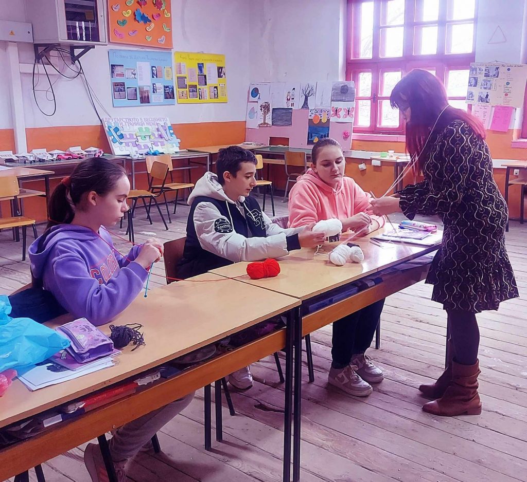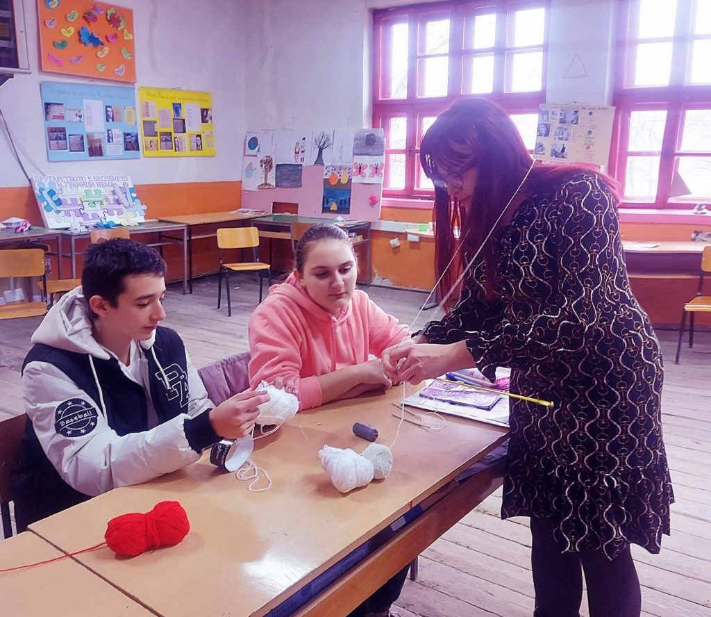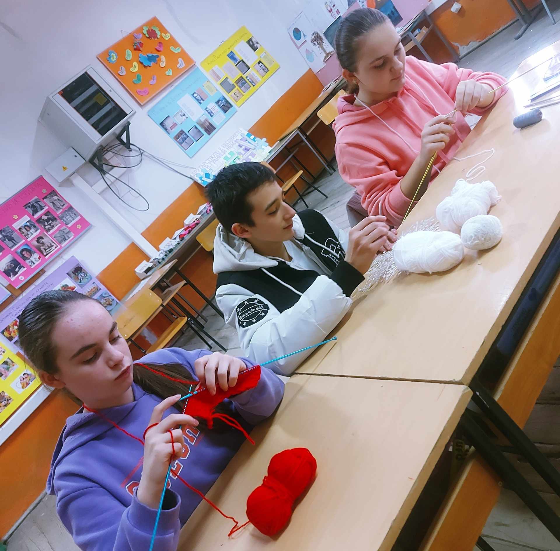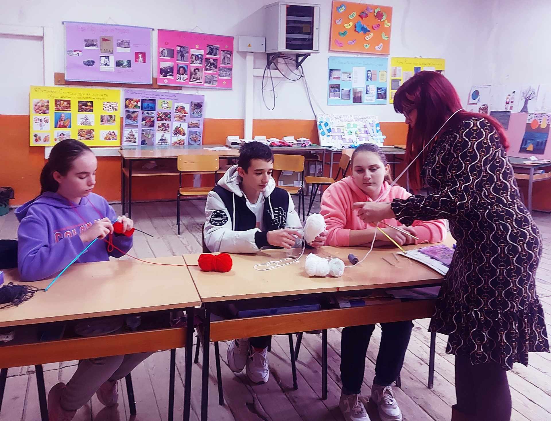 Работилница- Плетење со волница и две игли, шиење со игла и конец и начин на ткаење (модел) со учениците од седмо одделение и наставничката Маја Стојанова, по предметот Вештини за живеење By admin15/12/2023АКТИВНОСТИ 23/24
