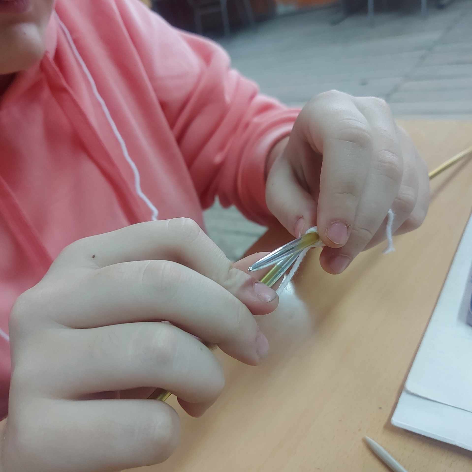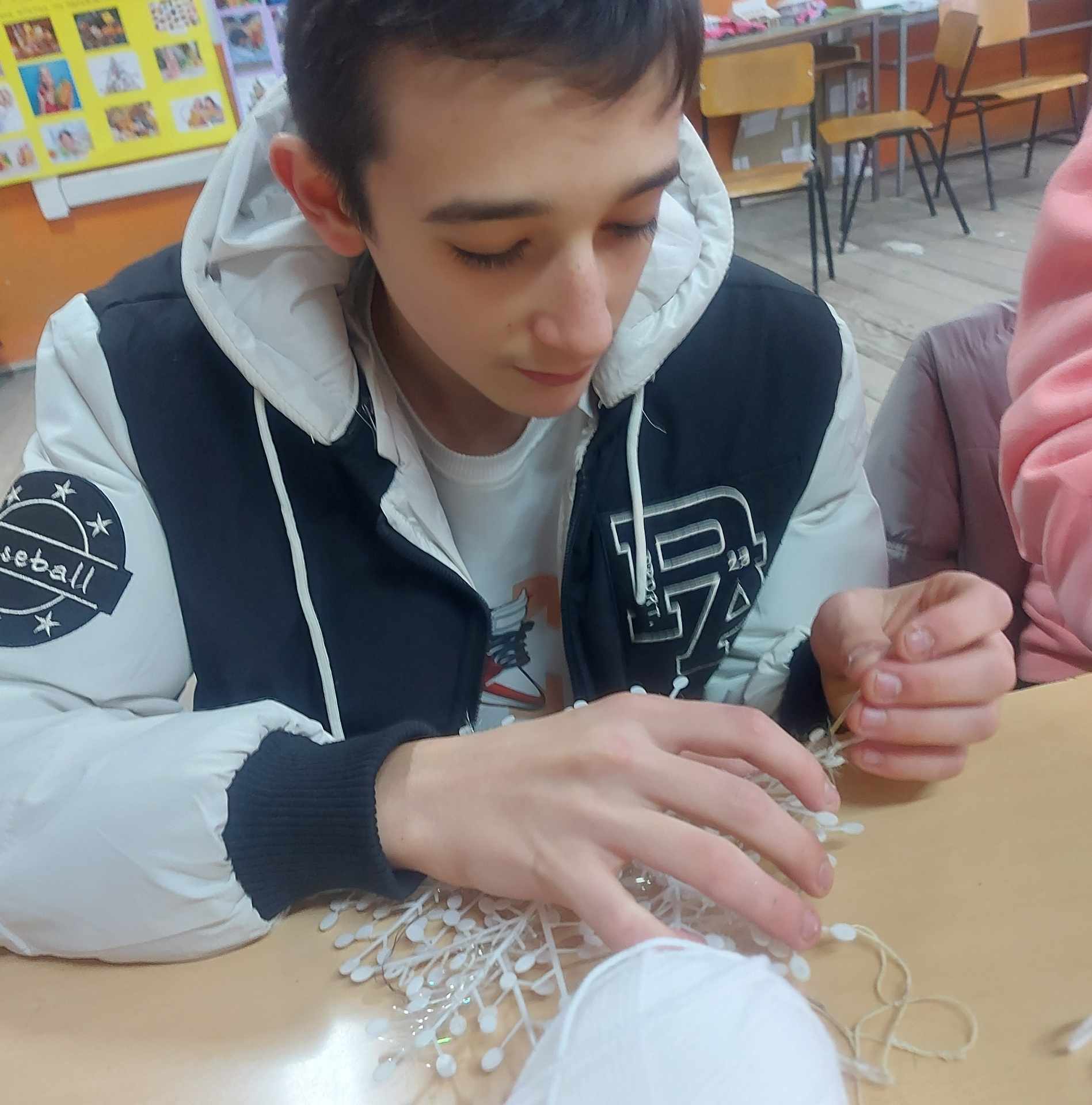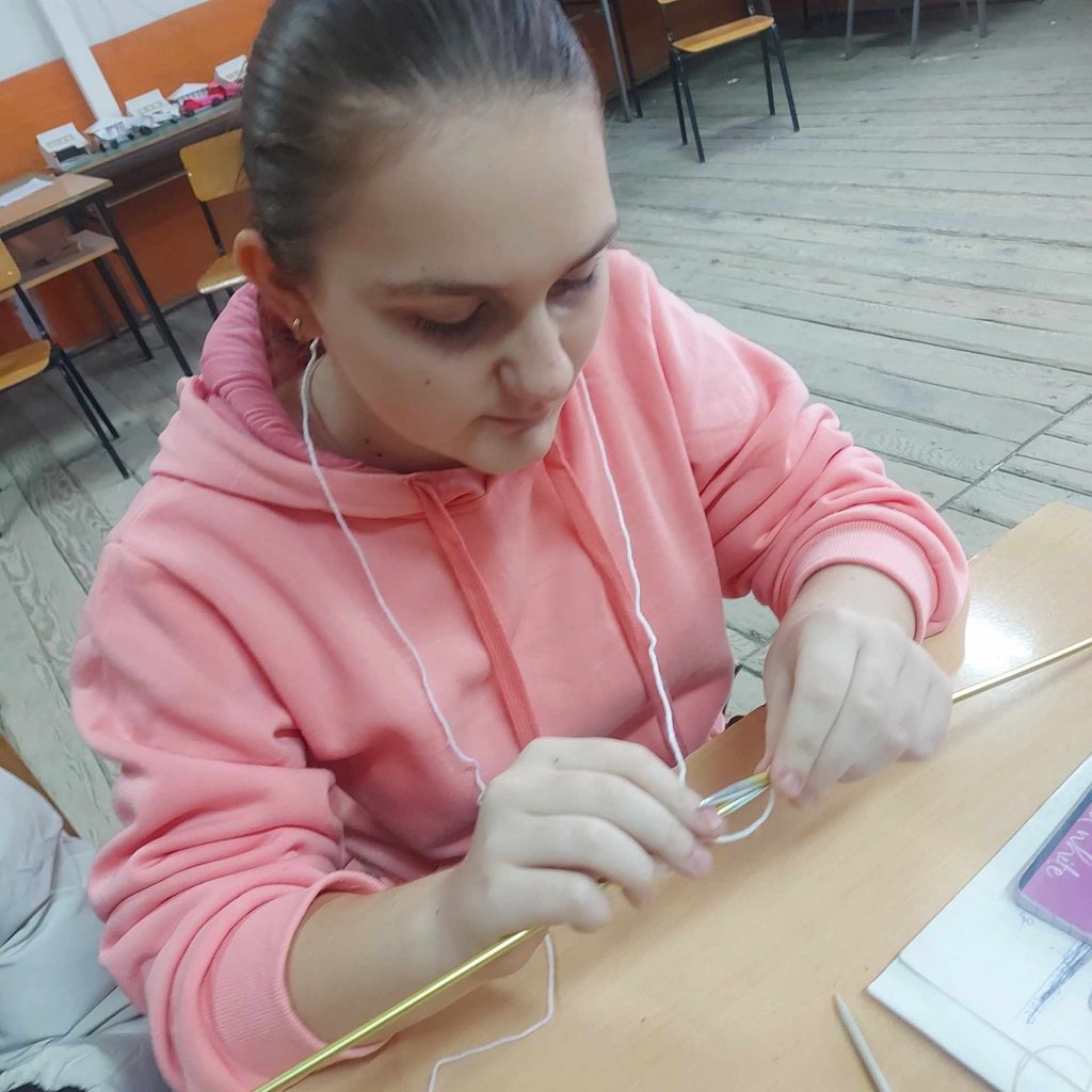 Работилница- Плетење со волница и две игли, шиење со игла и конец и начин на ткаење (модел) со учениците од седмо одделение и наставничката Маја Стојанова, по предметот Вештини за живеење By admin15/12/2023АКТИВНОСТИ 23/24