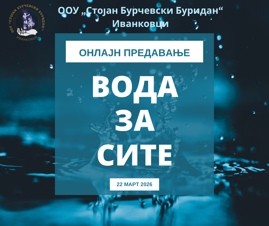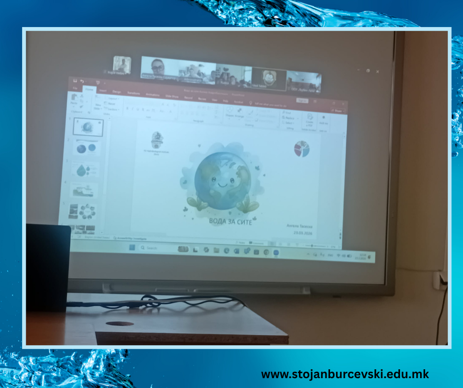 На 23.03.2026 година, ученици од нашето училиште го следеа онлајн предавањето на тема: „Вода за сите“ по повод Светскиот ден на водата. Предавањето беше спроведено од Хидробиолошкиот завод Охрид, преку мрежата за искуствено учење, каде се организираат предавања во врска со животната средина и климатските промени.
