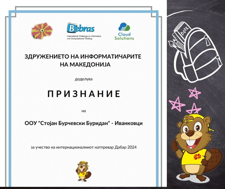 Во периодот од 4 – 8.11.2024 година, голем број ученици од нашето училиште се вклучија во интернационалниот натпреварар Дабар, наменет за ученици од основните и средните училишта кој има за цел да ја промовира информатиката и сродните науки. Дабар е глобален настан, и на него земаат учество ученици од повеќе земји во светот.