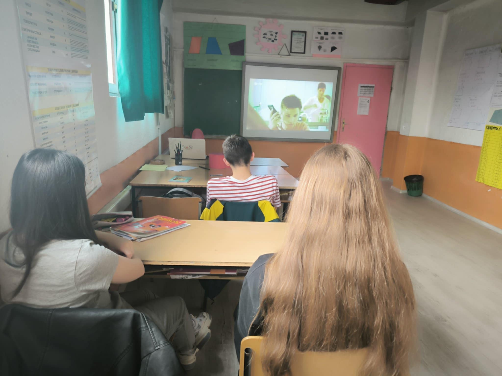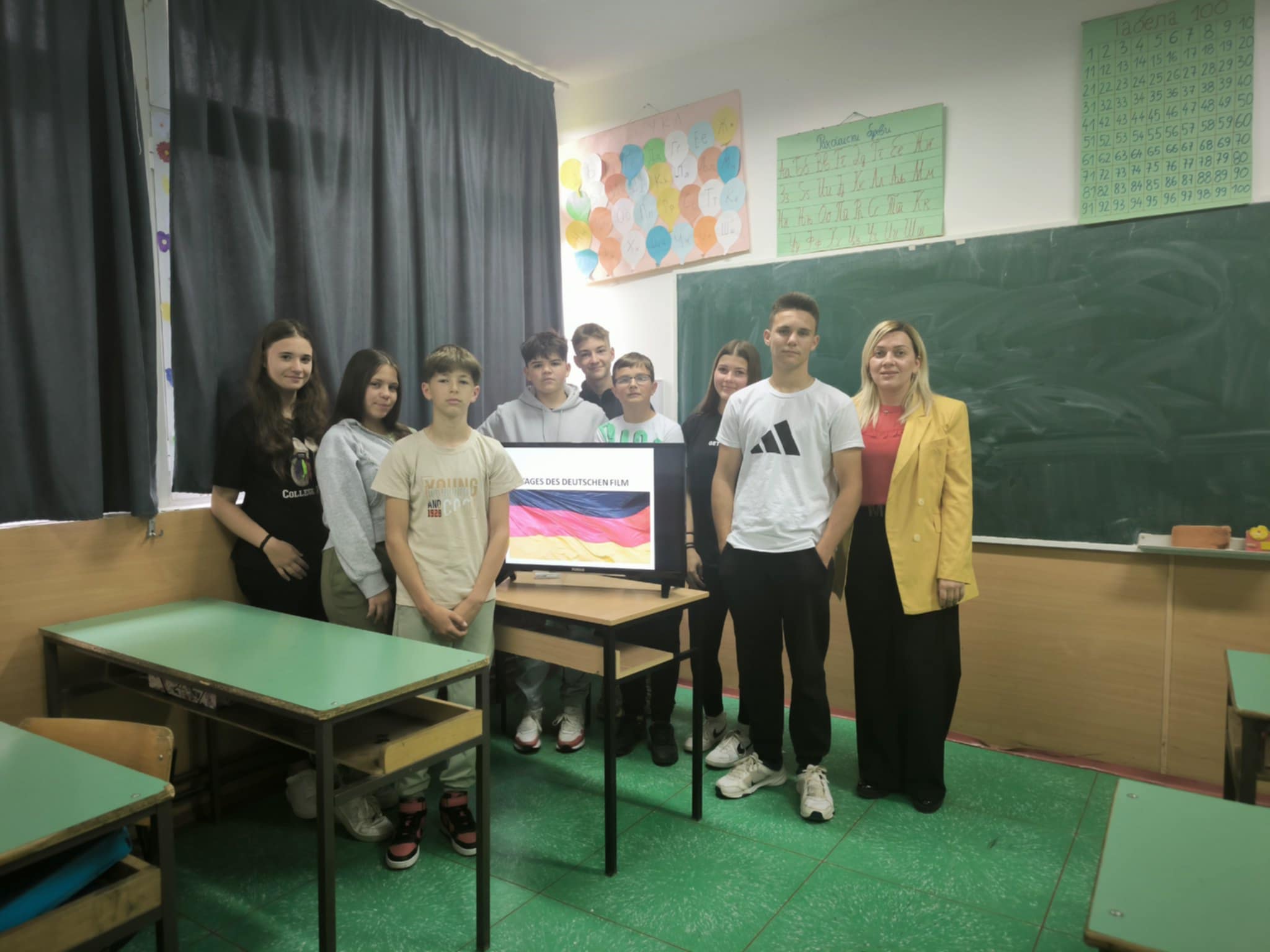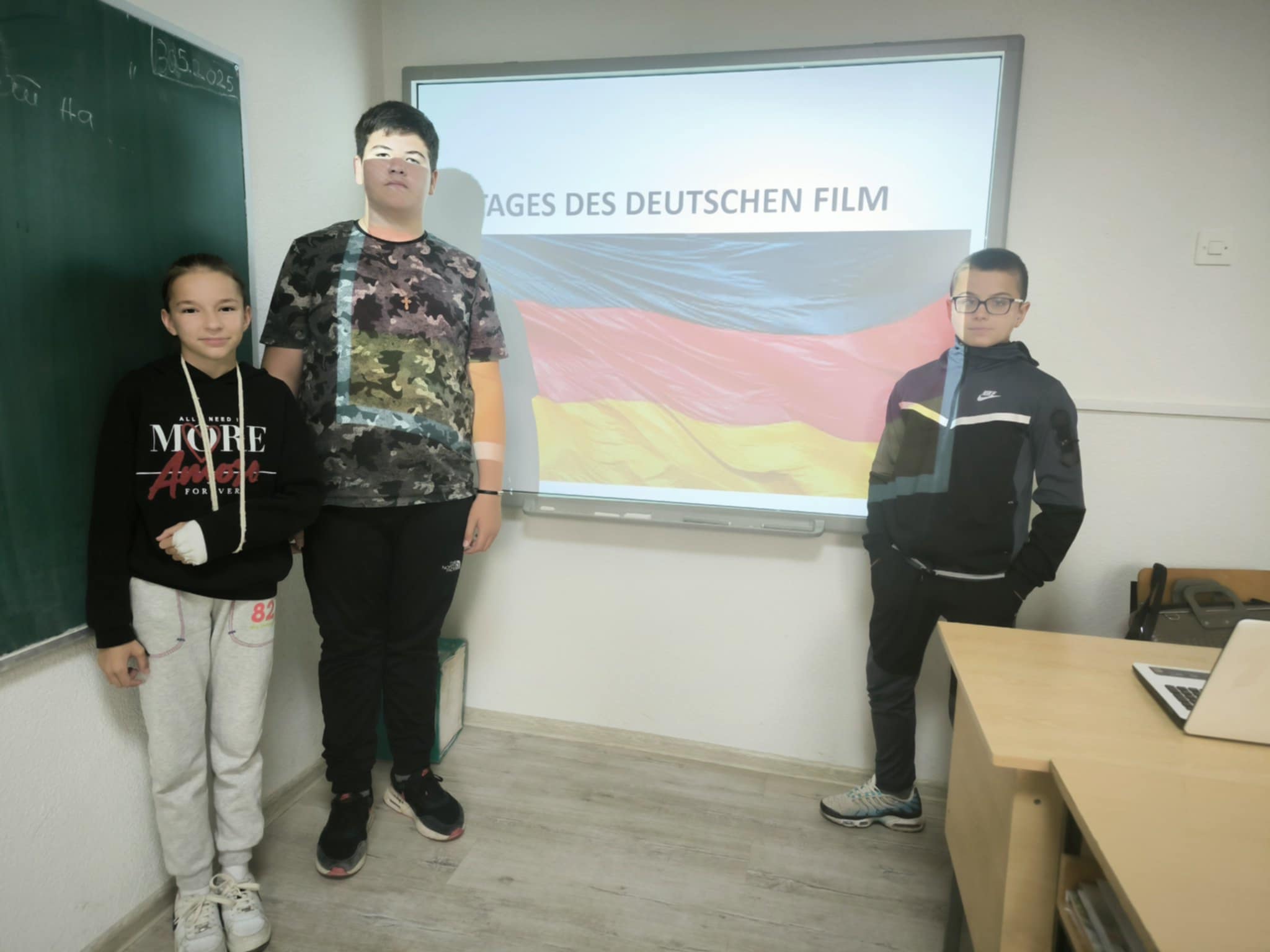 За време на часот по германски јазик, учениците имаа можност да го унапредат своето знаење преку гледање филм на германски. Оваа активност им овозможи подобро разбирање на јазикот, збогатување на вокабуларот и практично запознавање со изрази и граматички структури. Такви интерактивни методи се покажуваат како корисни во процесот на изучување јазици