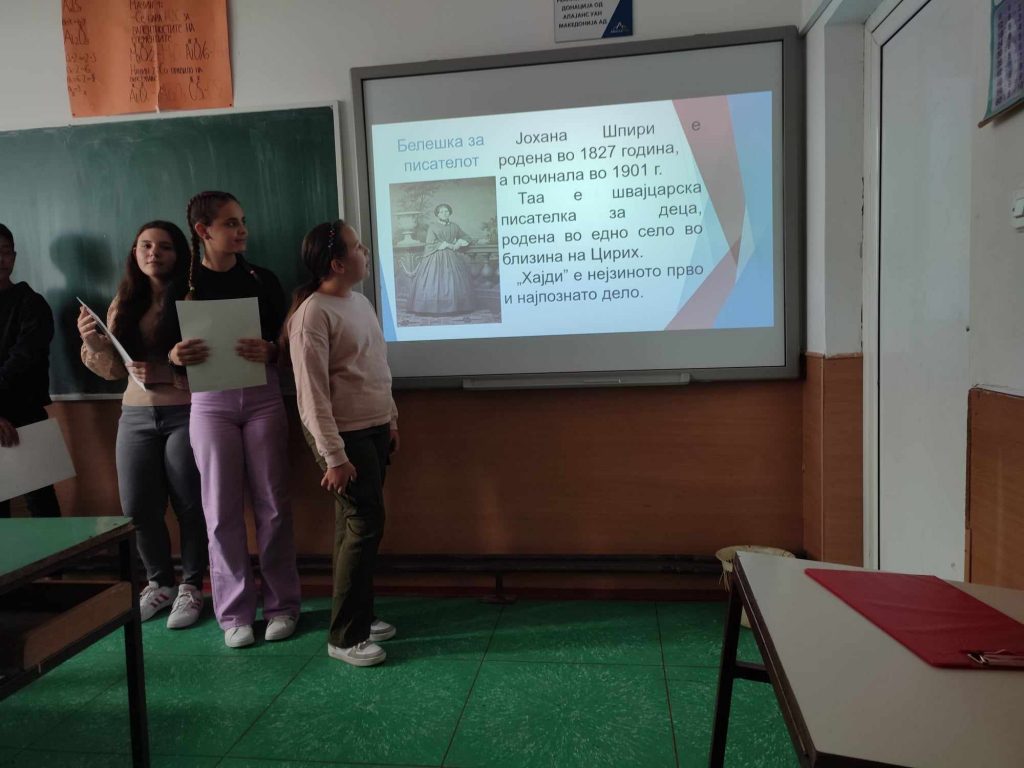 Oдбележувањето на месецот на книгата (15.X до 15.XI)во нашето училиште започна со читање и творење мудри мисли за книгата, а заврши со едукативната активност на тема: „Јас предложувам книга – прочитај ја ти!“, која е дел од проектот „Заедничка грижа за правилно насочување на учениците“. Во текот на оваа активност, учениците од предметна настава, претставија по една книга, лектира, која ја прочитале во летниот распуст и истата им ја предложија, како интересна и корисна на останатите соученици. Во активноста беа вклучени и родителите, со чија помош се изработи хамер, преку кој ја претставија лектирата „Хајди“ од Јохана Шпири. Одговорен наставник за активностите беше наставничката по Македонски јазик, Мирјана Пановска. Целта на овие две активности е да се развие интерес и љубов кон читање книги и да се зголеми бројот на читатели во нашето училиште.