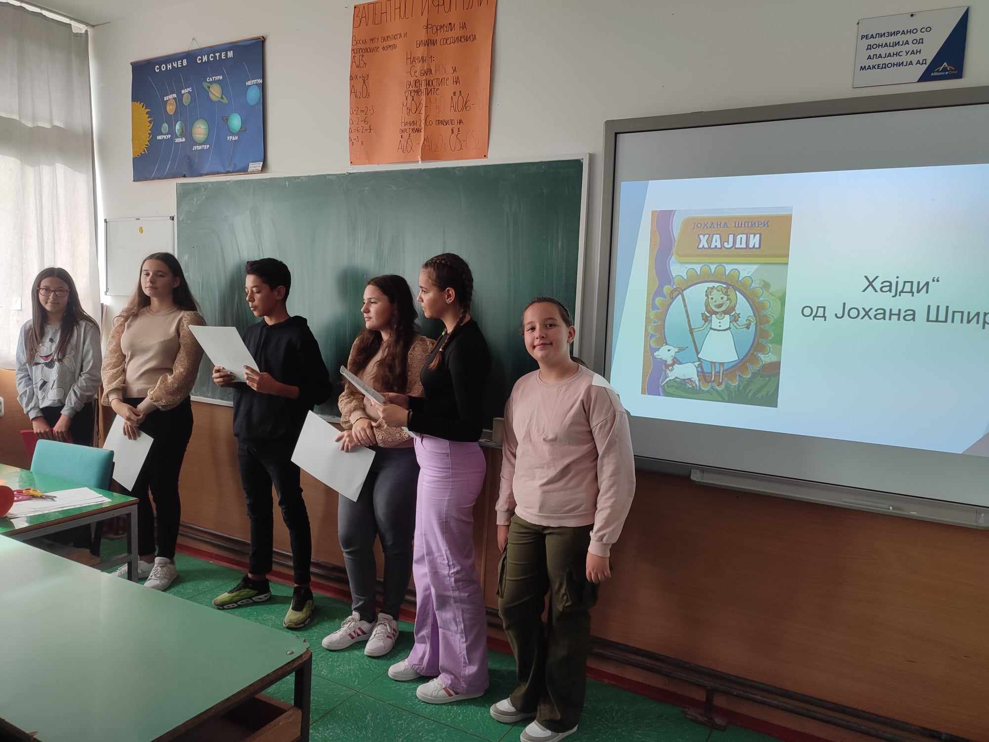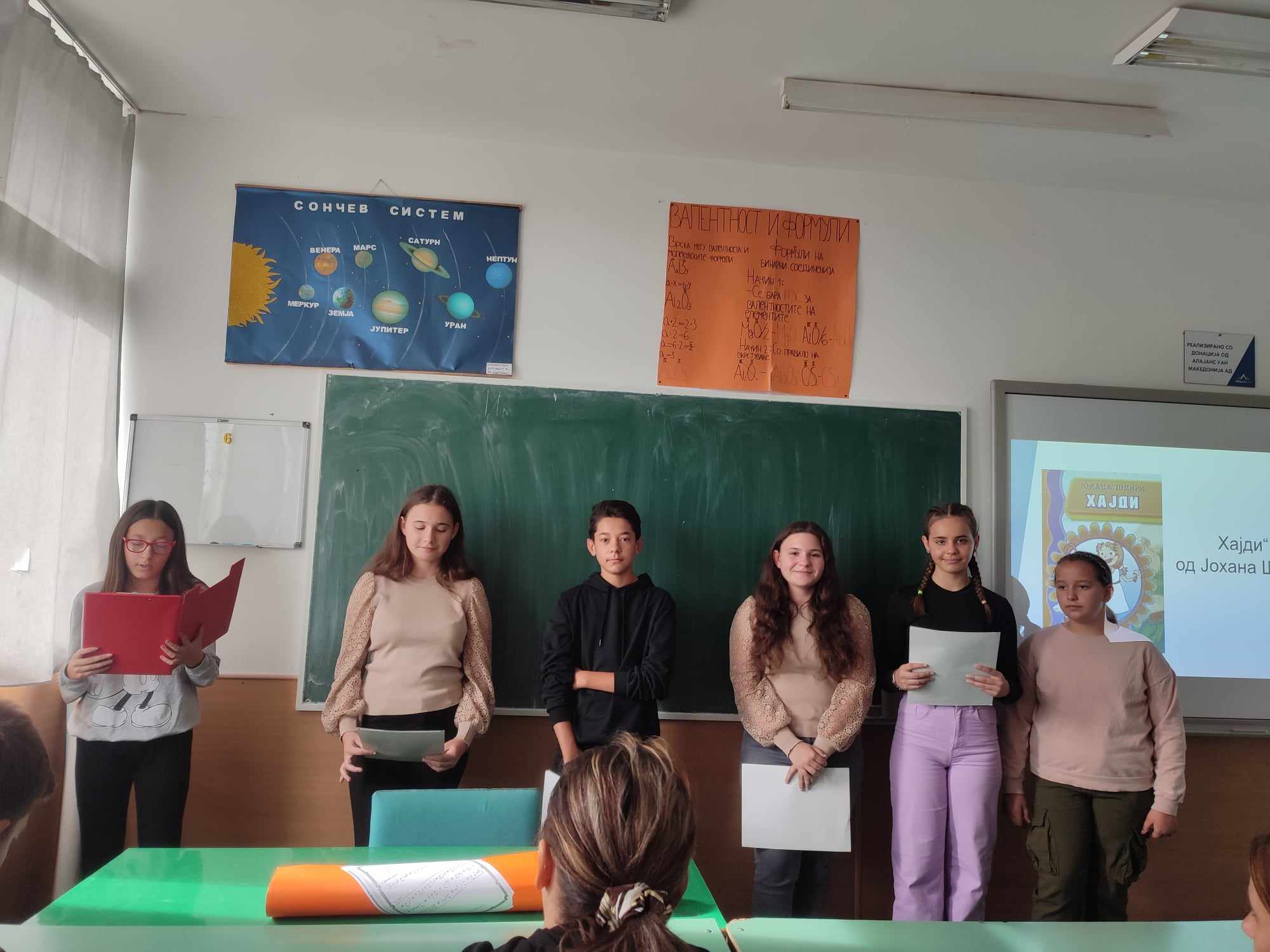 Oдбележувањето на месецот на книгата (15.X до 15.XI)во нашето училиште започна со читање и творење мудри мисли за книгата, а заврши со едукативната активност на тема: „Јас предложувам книга – прочитај ја ти!“, која е дел од проектот „Заедничка грижа за правилно насочување на учениците“. Во текот на оваа активност, учениците од предметна настава, претставија по една книга, лектира, која ја прочитале во летниот распуст и истата им ја предложија, како интересна и корисна на останатите соученици. Во активноста беа вклучени и родителите, со чија помош се изработи хамер, преку кој ја претставија лектирата „Хајди“ од Јохана Шпири. Одговорен наставник за активностите беше наставничката по Македонски јазик, Мирјана Пановска. Целта на овие две активности е да се развие интерес и љубов кон читање книги и да се зголеми бројот на читатели во нашето училиште.