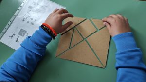Танграмот е сложувалка создадена во Кина за време на династијата Сонг, 960-1279 год., а нејзината почетна фигура е квадрат кој на точно одреден начин е исечен на седум делчиња. Основната нејзина цел е составување фигури од сите седум делчиња без нивно преклопување. Оваа активност, беше реализирана од наставничката Андријана Кариланова со учениците од седмо одделение по повод Денот на училиштето
