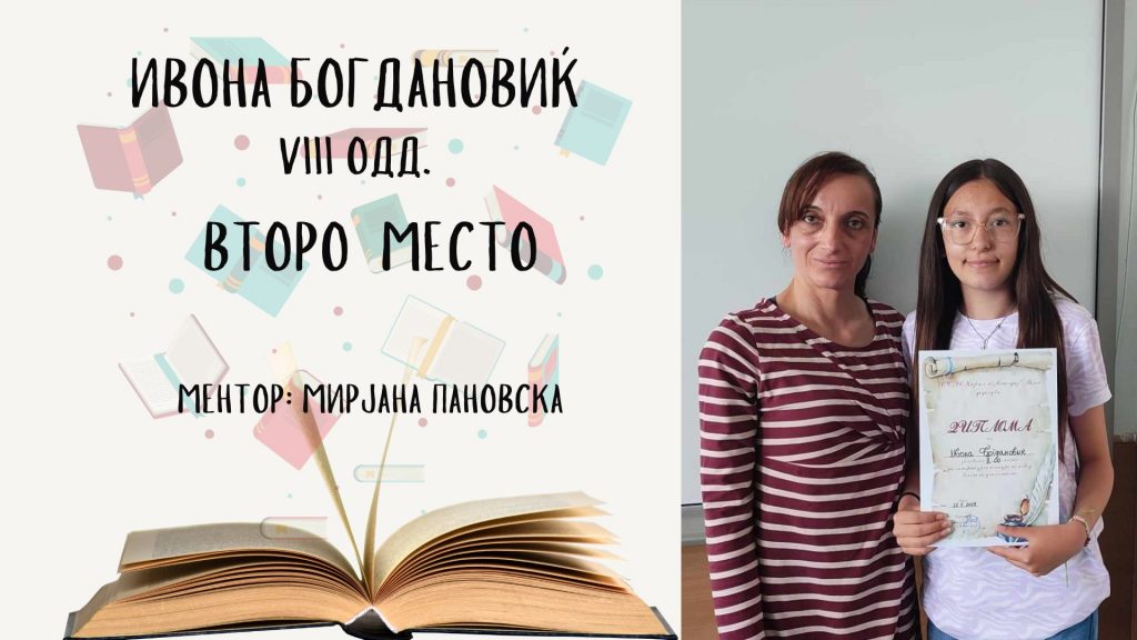 На распишаниот конкурс од ООУ „Св. Кирил и Методиј“ – Велес, по повод Денот на училиштето, на тема: „Светлина векови што сјае“, ученичката Ивона Богдановиќ од осмо одделение, го освои второто место, под менторство на наставничката Мирјана Пановска. Им честитаме и им посакуваме уште многу награди!