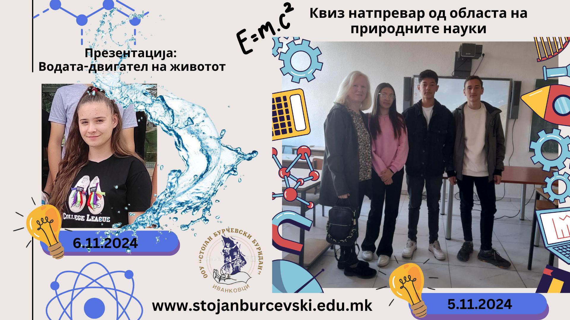 Квиз натпревар од областа на природните науки (Димитар Спасевски, Иво Богдановиќ и Ивона Богдановиќ) -ментор: Андријана Кариланова и