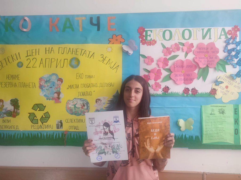 По повод 8 Март – Меѓународниот ден на жената, Клубот на писатели „Коста Солев Рацин“ – Велес и Локалната библиотека „Гоце Делчев“, распишаа конкурс на тема: „Мајка“, на кој со своја поетска творба, учествуваше нашата ученичка, Ања Димовска од IX одд. и освои трета награда, под менторство на наставничката Мирјана Пановска. Ѝ честитаме и посакуваме уште успеси во иднина!